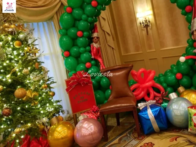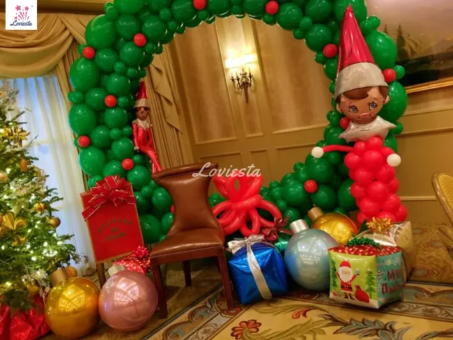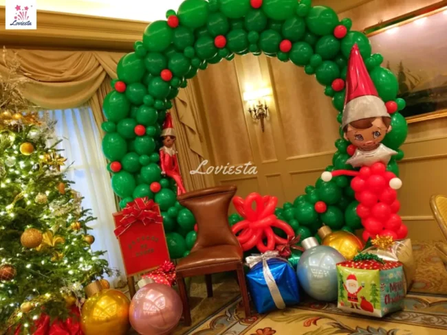 - 300 Latex dark green & 50 latex red balloon decorations in the ring.