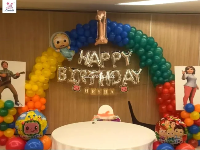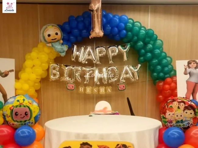 - 2 Cocomelon theme & 1 JJ foil balloon.