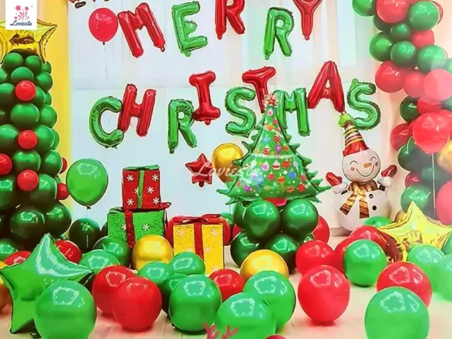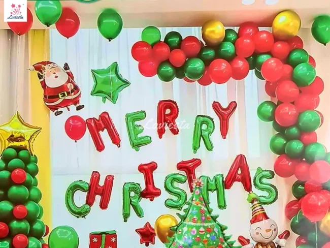 Cute Christmas Theme Balloon Decoration At Home