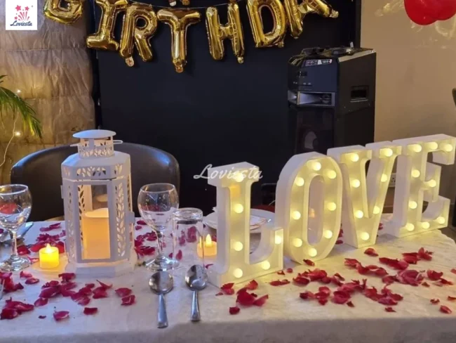 - Personalized decoration with balloons, candles, flowers & led letters as per the occasion.