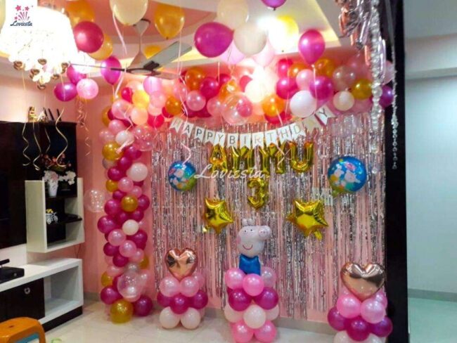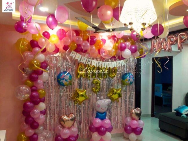 - 1 Peppa Pig foil balloon & 2 round Peppa Pig foil balloons.