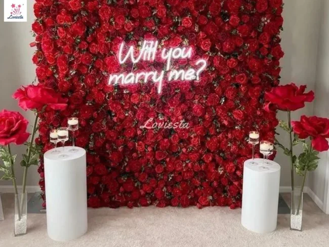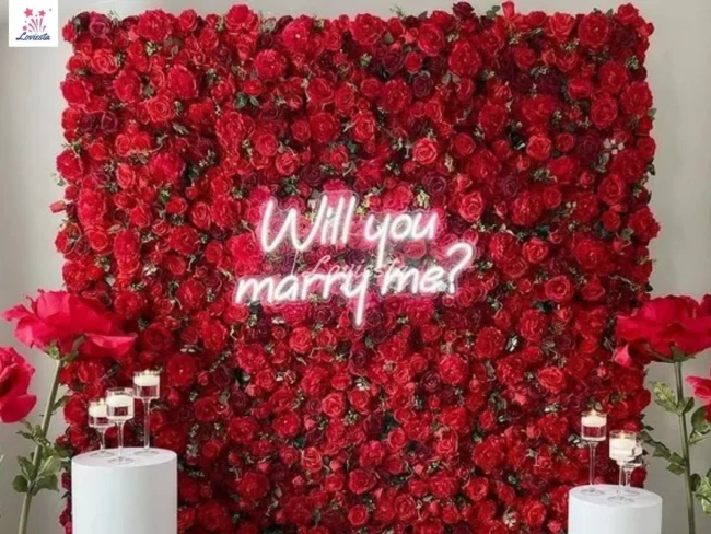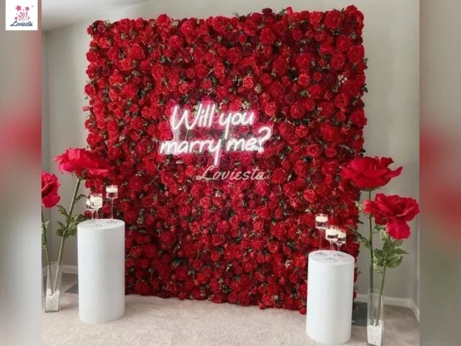 Premium Marriage Proposal Backdrop Decoration With Artificial Flowers