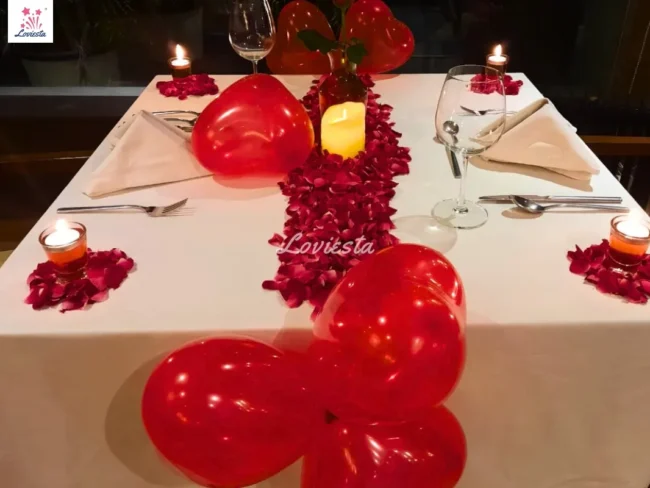 - Reserved private area & decorated dining table with candles, rose petals & balloons.