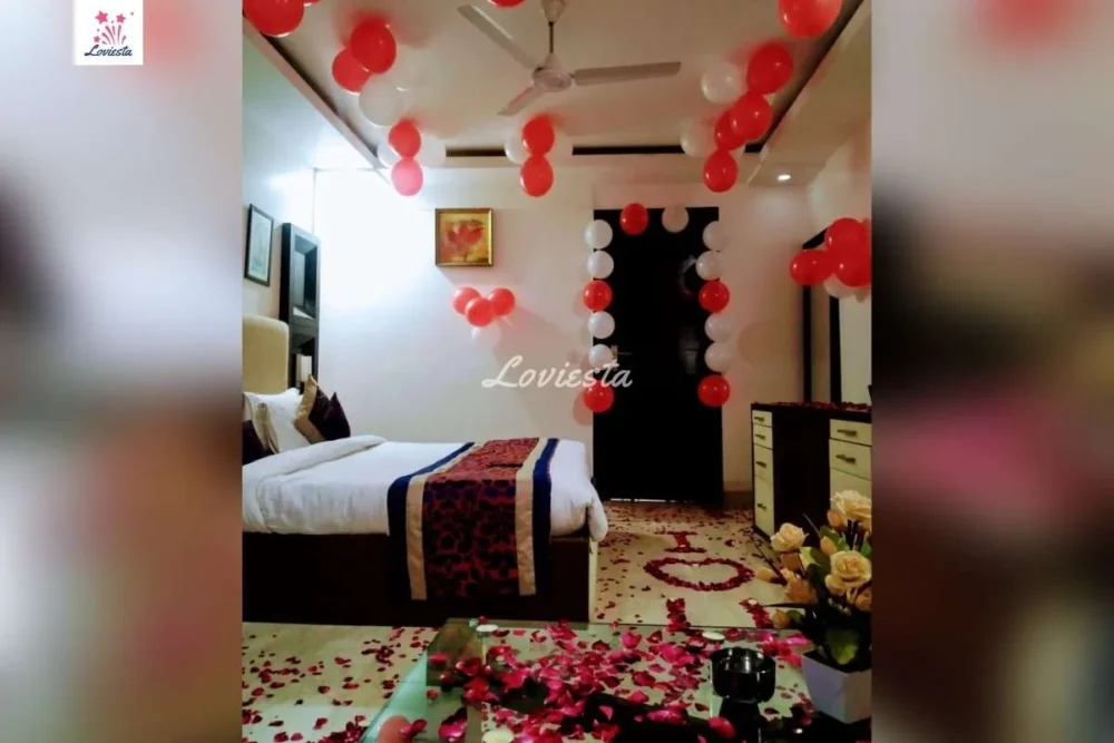 • Decorated room with Balloons. Rose Petals & Candlelight.