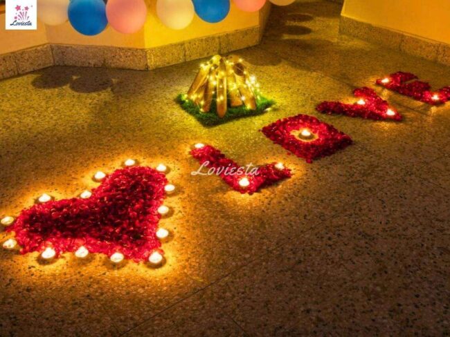 - Rose petals message with a heart sign is an Add-on (Not included in the basic package).