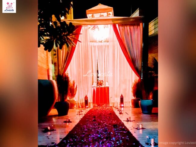 - Decoration with fairy lights, candles & flowers.